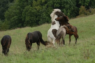 Sie möchten Ihr Fohlen erstmal Hengst lassen? Bei uns kein Problem! Sie entscheiden selber, ob Sie ihn kastrieren möchten oder lieber noch warten. Die Hengstgruppe wird „betreut“ von drei älteren