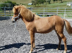 Eldey von Fjallaborg, DE2014273769 Eldey hat eine tolle Abstammung, V: Snar frá Kjartansstödum (Vollbruder von Töltweltmeister Snarpur) VV: Hrynjandi frá Hrepphólum, M Lukka frá Halakot, tolles Reitpferd mit super Charakter. Eldey zeigt viel Tölt mit schönen Bewegungen, trabt auch und hat sehr schönen Schritt. Ein interessantes Jungpferd, das sicherlich mehr ist als "nur" ein Fuchs!