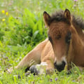 Ein lustiges sehr hübsches Fohlen, das gerne spielt, dem Menschen gegenüber aber eher distanziert ist.
