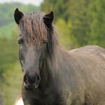 Hrafntinna musste leider 2016 eingeschläfert werden. Sie war ein unglaubliches Pferd. Hatte noch ihre letzte Kraft in die kleine Alfagjöf gegeben und dann haben wir sie erlöst. Ich war beim Einschläfern dabei so traurig das immer ist. Ein paar Stunden nach dem Einschläfern bin ich mit dem Auto am toten Pferdekörper vorbeigefahren und hab Hufe gehört und gedacht, was ist denn das? Drehe mich um und sehe Hrafntinna in den Himmel galoppieren, Richtung Norden, nach Island da wo sie verwurzelt war