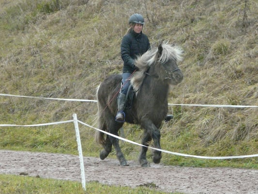 Windfarbiger Wallach mit viel Aufrichtung. Mit 139cm Stockmass ist er eine sehr hübsche Erscheinung mit seiner hellen Mähne und Schweif. Hat sehr sehr guten Schritt und Trab und schön gesprungenen Galopp. Trotzdem bietet er viel Tölt an der auch leicht zu reiten ist. Wir waren bei stürmischem Wetter im Wald unterwegs und er liess sich durch nichts erschüttern. Tolles Reitpferd für jemanden der diese Grundgänge sucht und sich dann im Tölt wieder erholen möchte :-) Für leichte Sportprüfungen oder als Luxus-Freizeitpferd. Nomen est Omen... hat er Sie schon verzaubert?